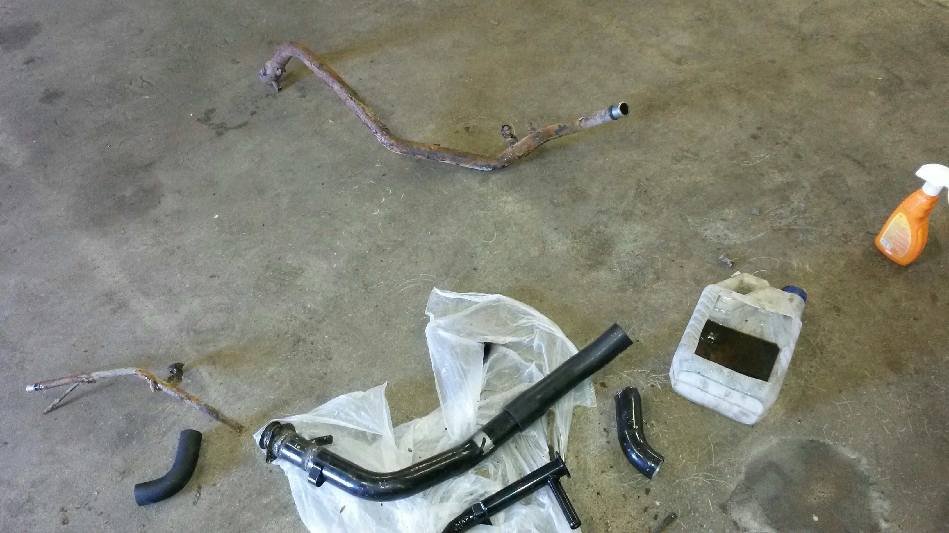 Я менял бак на алюминий, при монтаже оказалось горловина тоже сгнила, оставил от штатной начало и конец, середину смастерил из горловины и патрубка от вазовской 10ки и прямой трубы, воздушные трубки заменил на резиновые